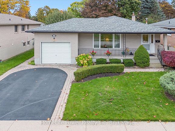 Welcome to - a beautifully maintained Alberta Backsplit in Guelph's sought-after West End. Nestled on a quiet, tree-lined, family-friendly street, this immaculate home offers the comfort of bungalow-style living, with just two steps to the bedroom level. Lovingly cared for over the years, it features an updated kitchen, a formal dining room with sliders leading to a private deck, and three spacious bedrooms with ample closet space. The lower level is bright and inviting, with large windows, a charming brick fireplace, and a custom bar - perfect for entertaining. A few steps down, you'll find a full 3-piece bathroom, laundry area, and a versatile hobby room with a Murphy bed - ideal for overnight guests or extended family stays. The backyard is a true highlight, beautifully landscaped with plenty of space for gardening or outdoor play. Warm, welcoming, and full of character, this classic home offers something special for every type of buyer. Close to all major amenities, minutes to the Hanlon, and walking distance to elementary schools, many parks including Margaret Green Park. A great place to call home!
