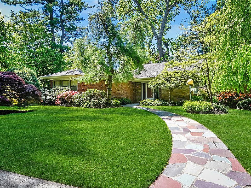 A hidden gem! Sprawling 4050 square foot ranch featuring 4 bedrooms 3.5 baths on an oversized property located in prestigious University Gardens. A gracious entry foyer welcomes you in, leading to a dramatic sunken living room with 10 foot ceilings & floor to ceiling windows flooding the room with natural sunlight. Great flow moves you effortlessly from living room to dining room into the sunroom & kitchen. A den/library with a partial cathedral ceiling and a home office can be found off the main level hallway. A separate wing houses a master bedroom suite along with 2 spacious bedrooms & full bath and on the opposite side of the house, a separate bedroom suite can be accessed via a private staircase. House boasts 9 ft ceilings, hardwood floors & full finished basement with outside entry. Enjoy outdoor entertaining on a lush .45 acre lot along with University Gardens resident-only pool & tennis. Taxes are currently being grieved.