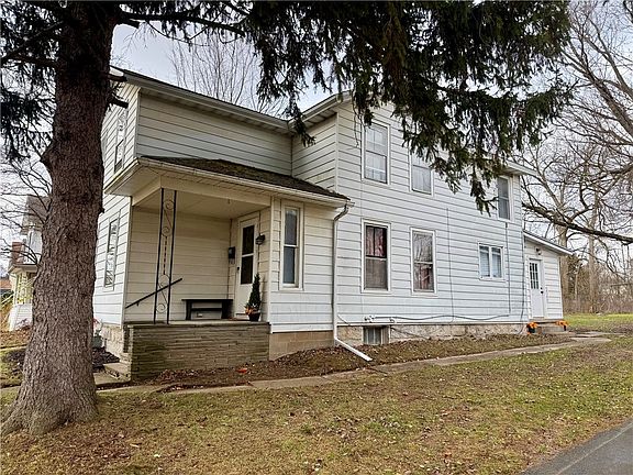 This nicely renovated and spacious home offers three bedrooms and two full bathrooms on a large village lot with a detached garage. Proudly situated on a wide lot, the home welcomes you with an open front porch and a small, inviting foyer. Inside, you'll find a large front living room and an additional room that can easily serve as a dining area, with enough space on the opposite end for a cozy den. The functional, roomy kitchen features newer flooring and appliances, along with a comfortable dinette area perfect for everyday meals. Just off the kitchen is an enclosed back porch that makes a wonderful sunroom overlooking the deep backyard. A full bathroom is conveniently located on the first floor. Upstairs, newer laminate flooring flows throughout the second level, where you’ll find three nicely sized bedrooms with closets and a second full bath. A generous walk-in hall closet provides excellent storage for linens and more. The property also includes a second driveway on the opposite side of the home, offering additional parking options. This home is in good condition and within walking distance to schools, shopping, and downtown Seneca Falls. With many updates including new flooring, appliances, lighting fixtures, on-demand hot water, plumbing, fresh paint, and more, this home is truly move-in ready.