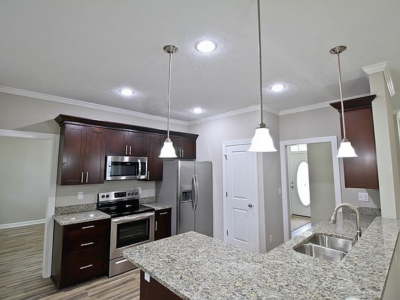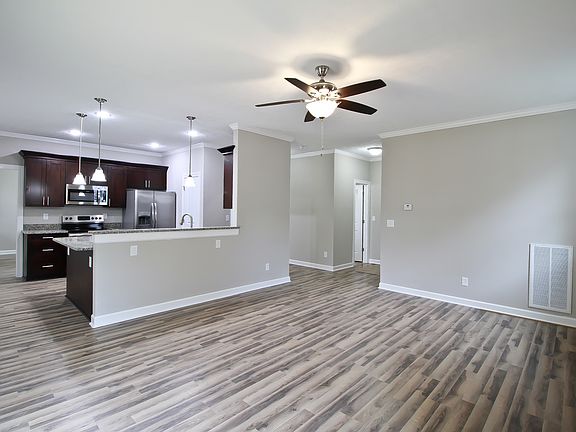 Don't miss out on this beautiful new construction! Cozy wooden front porch with columns and wooden deck out back. Laminate flooring throughout entire living room space and first floor. Column arch detail separating dining room from living room. Living room has gas fireplace. Kitchen features custom cabinets and granite countertops. Stainless steel appliances and breakfast bar. There is also a breakfast nook that overlooks backyard. Master bedroom has spacious bathroom with oversized tile in the shower. Double sink vanity with granite countertops and huge walk in closet. Attached 2 car garage.