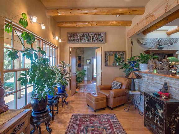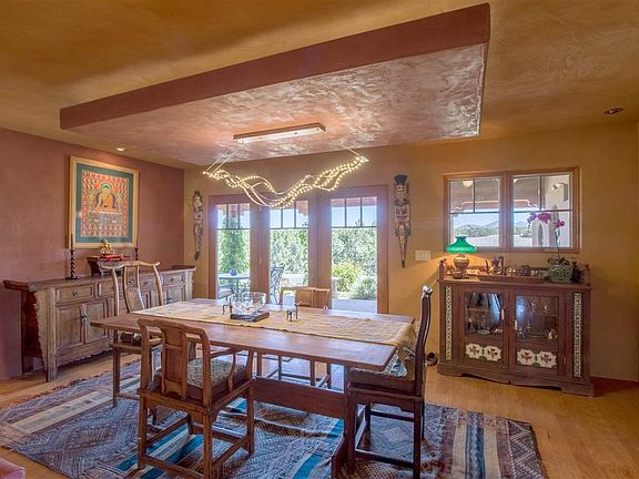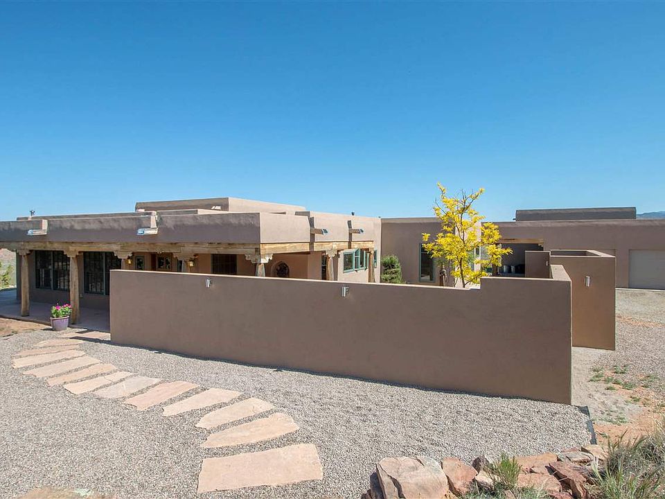 Hidden in the heart of Eldorado located next to a 62 acre greenbelt sits this luxuriously refreshed private retreat. From walled front entry to expansive mountain view rear portal is this amazingly lovely open split bedroom custom designed exquisitely finished residence. A large detached 2 car garage and beyond it over an 800 sf radiant heated studio( with bathroom) and 14' lofty ceilings! Central evaporative cooling system, on demand natural gas radiant heat, Pella architectural grade windows and doors and EPDM Roofing System. Anasazi accent walls, Asian entry doors, engineered wood flooring, American clay plaster walls and cherry cabinets. A private owner's suite with a free standing bath tub, plus a gleaming sophisticated cooks kitchen with a Wolf stove, just two highlights describing this beautiful residence. This is your dream to come home to on 1.7 acres and yet only minutes to shopping, and community amenities.