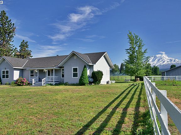 Mt. Adams views do not get any better than what this 2310 sq ft 4-bedroom, 2.5-bath home has to offer! This lovely well-built home is surrounded by breathtaking views of Mt. Adams, Sleeping Beauty mountain, and organic fields. Nestled in Trout Lake's organic valley, this property spans 1.43 acres and is just minutes away from hiking and biking trails. Trout Creek is also with-in walking distance. Inside this light filled home, you'll find a master suite with its own ensuite bathroom tucked away on the east end of the house. The heart of the home is the great room, where the kitchen and living area come together to create a spacious and inviting space. It's perfect for entertaining. The kitchen itself has a large kitchen island, ample counter space, and a convenient walk-in butler's pantry. A two-car attached garage adds convenience and functionality to the property, providing ample space for parking and storage, inside office or workshop. Outside, you'll find a fenced pasture or garden area, perfect for those with a green thumb or those looking to raise horses, or animals. A small storage area or barn is also included, offering additional versatility and storage options. This well-built home is in need of some cosmetic updates, but the potential is absolutely worth it. With a little bit of love and personal touch, you can turn this gem into a beautiful home.