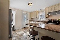 Open House Cancelled: Accepted Offer. Beautifully updated , well maintained and freshly painted home . Easy care vinyl siding and windows, completely fenced in yard , corner lot , excellent for pets or children. HARD-WOOD FLOORS throughout. Updated GRANITE kitchen. Slider to Nice Deck and PATIO excellent for hosting outdoor movie nights ! Flexible foor-plan. 1st floor bedroom and 1/2 bath. Two bedrooms and full bath on 2nd floor. Off street parking and garage! MBTA and bus stop minutes away , grocery store nearby , no need to own a car if you don't want to !