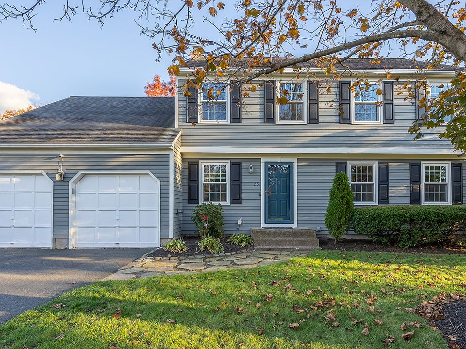 Located in the sought-after Strathmore neighborhood of South Cheshire, 28 Newbridge Circle combines timeless colonial style with thoughtful updates and an inviting layout. Set on a landscaped 0.29-acre lot, this well-maintained 4-bedroom, 2.5-bath home offers nearly 2,000 sq ft of living space plus a finished lower level for added versatility. The main floor features hardwood flooring throughout, a living room, dining room with wainscoting, eat in Kitchen and a welcoming family room with a fireplace and direct access to a lovely oversized outdoor patio-perfect for relaxing or entertaining. Freshly painted interiors on the first floor add a crisp, move-in-ready feel. Upstairs, you'll find 4 spacious bedrooms and two full baths and walk-in unfinished attic space. An additional 500 sq ft in the finished lower level provides space for a home office, or fitness area-and includes laundry area. Enjoy direct access via the neighborhood path to Bartlem Recreation Area featuring a large playground, fields, band shell, and the town pool. With convenient proximity to Cheshire's town center, local shops, and commuter routes, this home offers both comfort and community in one of the area's most desirable settings. City water-city sewer-Oil Heat-Central Air. Come see the beauty of what the town of Cheshire offers with its' open space, Roaring Brook Falls, Farmington Canal Heritage Trail, Parks, outdoor recreation and more. Practical updates include hot water heater (2019), oil tank (2023), fresh exterior paint (2022), gutters (2022), fencing (2022), and a newer garage door opener (2022). Strathmore Woods Association handles lawn care and snow removal in common spaces for $305 annually.