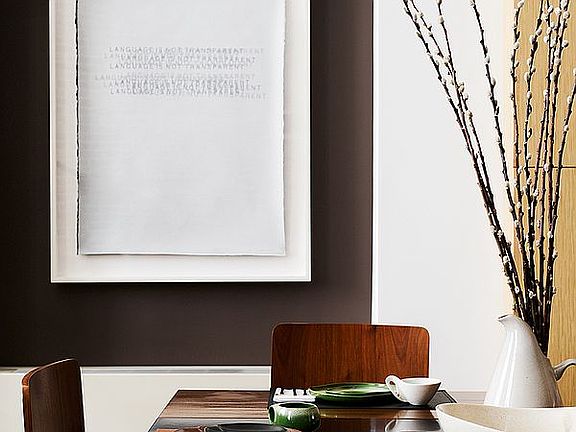 The lower level offers a quiet living area defined by soaring 23-foot ceilings and another entrance.