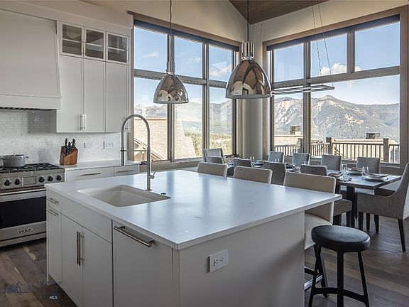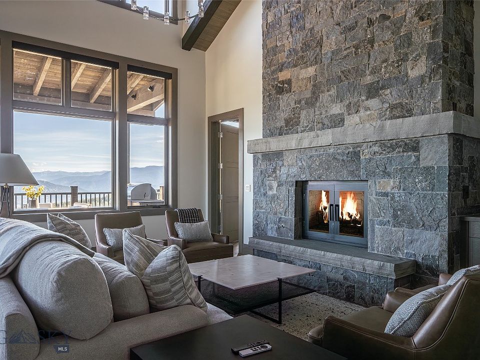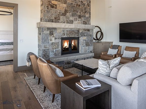 Stunningly appointed 5-bedroom, 6 bath ( 1 full, 5 3/4 ) Inspiration Point unit at Spanish Peaks Mountain Club. An end unit in a prime location, this unit is furnished to sleep up to 10 and features floor-to-ceiling windows that provide amazing views of the Spanish Peaks, the Gallatin Range, and back to Lone Peak. Not a detail is missed: gourmet kitchen with Wolf and Sub-Zero appliances, wood floors, 3 fireplaces, a large main level deck with a gas firepit, ample seating and gas grill, and a lower level patio with a hot tub. The Main level features the master suite with a gas fireplace, a large ensuite bathroom with a tub and a separate steam shower, and a walk-in closet with built-ins.