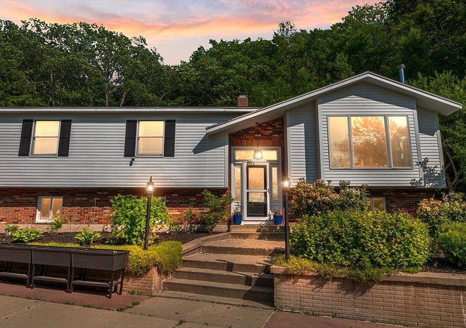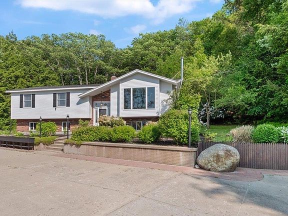 Set back from the road with a gorgeous view sits this 4 bedroom raised ranch home on over 6 acres. Relax on your large private deck built into the rock ledge. Stroll up the floating staircase to enjoy your very own 2 story sauna house with shower and exercise room. Or make it your remote office. Go for a hike in your own backyard. Watch the sunset over Mt Monadnock every night from your living room window or from the sauna house deck. Get fresh eggs from your very own chickens. The large front yard is perfect for gardening! This move in ready home has newer appliances, carpeting and fresh paint. Three bedrooms including primary bedroom with bath are on the main floor. Another bedroom and a bonus room with large walk-in closet are downstairs. Enjoy sitting by the woodstove on a chilly evening. Oversized garage under the house with water hookups and drain for easy clean up. Plenty of storage. Great space for entertaining. Fast internet. Dead end freshly paved road. There is also a 50 amp camper hookup in the driveway. Easy access to Peterborough, Jaffrey, Keene and Nashua.