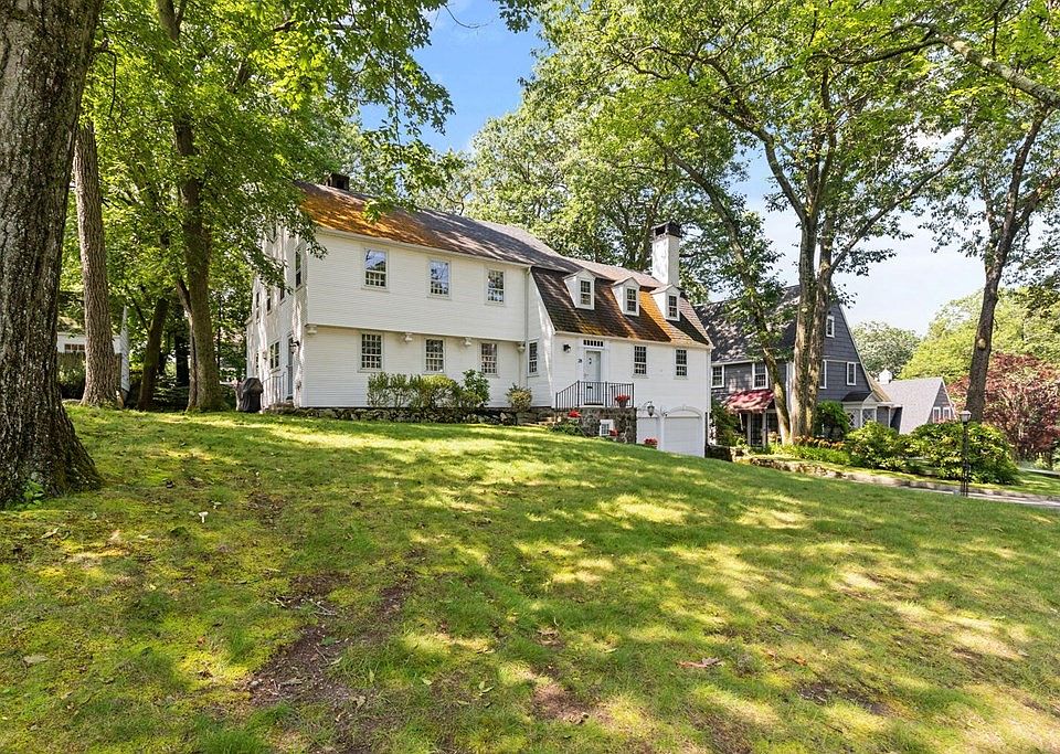 Quintessential New England Dutch Colonial situated in Melrose's "Pill Hill", a quiet enclave nestled in the middle of Cedar Park. This custom built home, constructed in 1930, has only had 2 owners. Quality craftsmanship is visible throughout the property starting with a one-of-a-kind 'medieval club room' the perfect spot for game nights and/or cocktails beside the stone fireplace. The very considerable formal living and dining rooms are wrapped with wainscot and crown molding. A large working kitchen with two sinks, cooktop and wall oven awaits your custom renovation with the possibility of a built-in pizza oven. The four + generous bedrooms on the second floor have great closets/storage and the primary bedroom includes a private en-suite. Enjoy the screen porch just off the foyer overlooking the patio and large, lush back yard. Two car garage, access to public transportation and convenience to downtown Melrose with all of its quaint shops and restaurants. This is a "Don't Miss"!