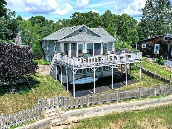 Welcome to Pinehurst Beach! This oceanfront ranch style home is set off street w/ great curb appeal, fenced in yard, & fantastic views. Situated in cove, provides a peaceful & quieter vibe, yet quick access to Buzzards Bay for your boating pleasure. Step off your deck to seawall stairs & drop your kayaks or paddle-boards in and enjoy right from your yard. Vaulted ceiling main living area provides open/spacious floor plan that has stylish exposed beams and wood accents. Sliders off back of house offers tons of natural light out to oversized back deck. 2 bedrooms on main level with full bath. Spiral staircase to lower level w/walk out offers family room, laundry room, full bath, & guest room. Central ac too! Voluntary beach association has fun activities & events throughout the season.. Easy highway access without the bridge traffic hassle. Nearby downtown Wareham & Onset offer many restaurants, shopping, golf, & entertainment. Perfect year round, weekend, vacation spot.