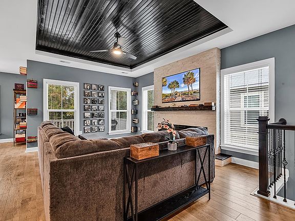 - Features: Tray Ceiling(s), Ceiling Fan(s), Fireplace