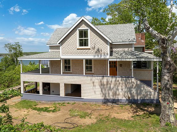 Enchanting island cottage has been fully renovated with skill, care and upgraded materials. The wraparound porch is where to relax and soak-up beautiful water views, all-day sunshine, and dramatic sunsets. The elevated, covered perch will be a room you enjoy daily. The light-filled interior is a whole new home. The floorplan has been resigned to create a functional, fully-applianced custom kitchen with office nook (plumbed for ½ bath), Living Room with captivating water views (oversized window), and a vaulted second floor Bedroom suite that also overlooks the water. The full Bath features a gorgeous, tiled shower, tile flooring, washer & dryer. Storage has been cleverly incorporated into the design with nooks & custom built-ins. The exterior profile retains its delightful cottage charm but is freshly wrapped in decorative new shakes and Anderson 400 series windows. An impressive walk-in/out undercarriage could be used as a covered patio, and/or storage. There's even room for a generator or a freezer. You will enjoy public water/sewer, brand new heat pumps, 200 amp service, and pine flooring. Easy 10 minutes access to village/ferry/beaches/TEIA club. And Portland's Old Port is a short ferry ride from the island. This special year-round home is perfect as a stand-alone property but do note its proximity to #19 Pleasant Avenue. Buyers in search of a main house+ guest house will not want to overlook the potential that ownership of these two properties presents. Please submit offers by 12:00 Tuesday and allow a 24 hour response window.