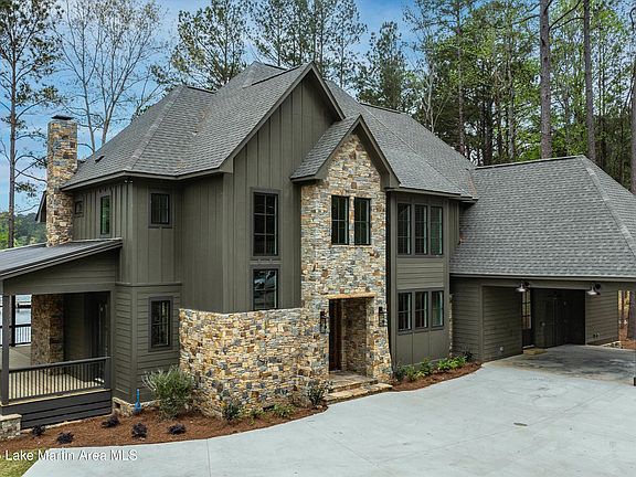 Welcome to 28 Pleasure Island on Lake Martin. Stunning New Construction home located at the entrance to The Narrows at Parker Creek. The home offers large open spaces boasting over 4000 SF on 2 levels. The main level is home to a stunning primary suite, providing a private retreat with breathtaking views. Upstairs, you'll find three generously sized bedrooms, a cozy bunk room perfect for guests, and a second living area ideal for relaxation or entertainment. A gently sloping lot, great views and a huge lakeside covered porch. A convenient lake storage area adds practicality for all your boating and water activities. Home is on schedule to be complete mid April and ready for this Summer. Additional interior photos coming soon. No rental restrictions.