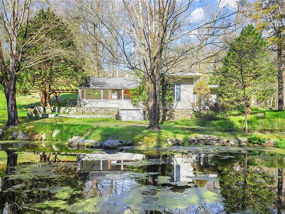 At the end of a private stone-wall lined driveway, your quintessential 2-bed, 1-bath sanctuary awaits amidst serene bucolic surroundings, enhanced by a picturesque pond. Overflowing with potential, this tranquil Pound Ridge home sits on 3.49 acres of park-like grounds, providing an escape from the hustle and bustle of everyday life.