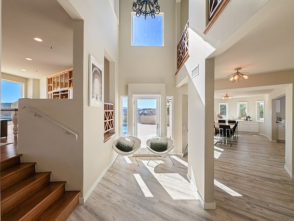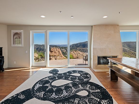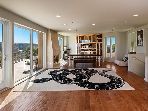 Perched on a private hillside within the prestigious guard-gated Bell Canyon community, this stunning 5 bed and 4 bath custom home perfectly blends luxury and nature. Walls of glass capture sweeping canyon, mountain, and city light views, creating a serene, ever changing backdrop. The main level features a spacious living area, formal dining room, and updated modern kitchen with a generous sized center island ideal for entertaining. The primary suite spans the entire top floor with a spa like bath and private lounge overlooking the glittering skyline. Outdoor living shines with multiple patios, a sun drenched deck, and a dark-bottom pool surrounded by lush succulents and fruit trees. Additional highlights include a 3 car garage and a 2,000+ bottle temperature-controlled wine cellar. The house includes smooth stucco, 11 panels of solar on the roof, newer windows and doors, a pebble Tec pool, and resurfaced decks. Bell Canyon offers residents a park, tennis courts, hiking trails, and horseback riding for the ultimate retreat lifestyle. This spectacular home is ready for you to make your own.