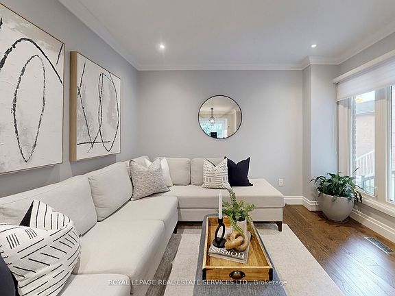 Renovated eat-in kitchenStainless steel appliancesCaesarstone countersMarble backsplashHardwood floorsProfessionally finished basementPremium pie shape lot
