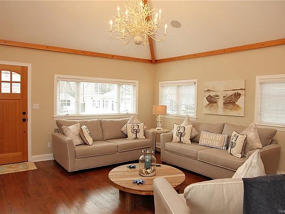 Picture Perfect Luxury unfurnished House in a wonderful enclave just (1) Block from Rye Beach. This Home has been totally renovated with new Roof, siding, insulation and new Windows. All new Oak Flooring with all new interior Walls, Electric and Plumbing. A/C Piped throughout House. (2) Full Bathrooms and (3) bedrooms. (2) Bathrooms are En suite. All rooms are Cable and Phone Ready with new TV s in Each Room. Sonos system connected throughout. Eat in Kitchen with all SS Appliances reverse osmoses water filtration with Cozy Seating Area to enjoy wood Burning Fireplace. Laundry Located in Hallway off Kitchen. Large Deck off Kitchen with Patio Sliding Doors and new Propane Barbecue. Exterior Lighting and Speakers on Deck. Exterior Fully Fenced with Lawn Front and Back. Heated Front Path from street to Front Door. Double Car Driveway at rear with Street Parking front and Back of Property.