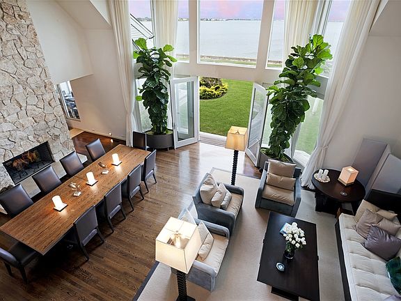 When you enter the long, manicured drive to this home you find yourself immersed in the epitome of Hamptons luxury! This exquisite contemporary estate enjoys a phenomenal waterfront setting on Moriches Bay. From nearly every room and from the outdoor spaces & decks you can enjoy unobstructed views and magnificent sunsets. The incomparable lifestyle afforded here is enhanced by the secluded setting in exclusive Remsenburg offering ultimate privacy. An acre of pristine grounds is privatized by lush mature landscaping & specimen trees and illuminated by new LED exterior lighting. The home boasts an incredible 186' of new bulkhead with a 10' mahogany walkway. A 14,000 pound high-tide boat lift has your boat ready to go and jet-ski ramps await your water sports enjoyment. A Wi-Fi system, swim-up kitchen/bar & pool house with indoor/outdoor showers offer the water lover and the host every amenity for the ultimate resort lifestyle. Truly a family retreat and entertainer's delight! Sitting beyond a secure gated entrance, this magnificent 6 ensuite bedrooms, 7.5 baths bay-front residence with a luxurious master suite including a fireplace & spa bath as well as expansive waterfront views was designed with superior details & construction. The 9,700 sf. interior is brimming with refined finishes and enriched by hardwood & stone floors, 6 fireplaces (5 wood-burning, 1 gas) and 8' mahogany & glass inset doors. Smart home electronics allow easy control of cameras, security & fire systems, audio visual, Wi-Fi, thermostats & shades. These are only a few of the exhaustive additional list of amenities for your state-of-the-art comfort. There is a beautifully designed 16 x 16 work & storage shed, and an oversized 2-car garage with a Backyard Buddy Lift for a 3rd vehicle. Perfect as a seasonal or year-round retreat, this exceptional home is timeless. The gracious layout boasts elegant open rooms that extend to the outdoors for seamless entertaining. A towering great room, superlative custom kitchen with honed raw timber beams, custom-designed stainless steel, professional Viking, Traulsen & Miele appliances, 3 wine coolers, and bonus prep/chef's kitchen for those loving to cook or for your entertainment needs. As you open the glass doors of the kitchen, you are greeted by a spacious screened in porch overlooking the open bay for al fresco dining. Besides its incomparable beauty, this rare offering is just as unique for its value being west of the canal, with properties to the east double & triple the price. The prime location is just 1.5 hours to Manhattan (without the tons of traffic you'd encounter going out east), minutes to the LIRR, Hampton Jitney & Gabreski Airport! The historic hamlet of Remsenburg is known for blue-ribbon schools & proximity to sandy beaches, and the shops/restaurants at nearby Westhampton Beach.
