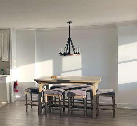 Bright and newly painted 2-bedroom, 2-bath rental offering a warm, modern feel and move-in ready convenience. This fully furnished home features an open dining area with stylish lighting, neutral tones, and durable flooring that complements any dcor. Large windows invite plenty of natural light, creating an airy and welcoming atmosphere throughout. The bedrooms are comfortably sized for relaxation or a home office setup, with a clean and functional bathroom nearby. Residents enjoy the added benefits of a doorman for security and convenience, plus an included parking spot. Thoughtfully designed for comfort and everyday living, this rental delivers a cozy yet contemporary lifestyle in a well-maintained setting.