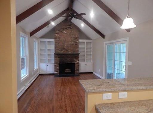 Fully renovated 4 Bedroom Center Entrance Colonial in much sought after North Walpole. Set on ½ acre corner lot, this home features a large kitchen with breakfast bar, granite counters, and ss appliances open to Dining area. First floor consists of a bright front to back living room, powder room with wainscoting, and a fireplaced den with vaulted ceiling, built-ins, and recessed lighting. A nice covered 12x16 deck with an additional 6x16 open deck area for grilling completes the first floor. An open foyer leads to the second floor living area consisting of 3 family bedrooms and a full size main bathroom with tiled tub/shower. The master bedroom is front to back with a walk-in closet, has a private master bath featuring a tile shower with 2 shower heads, and a 4 foot vanity. The finished walk out basement has a game room and an additional room that can be used as a 5th bedroom, home office or gym. A full bath with a shower stall and a laundry room are also on this floor.