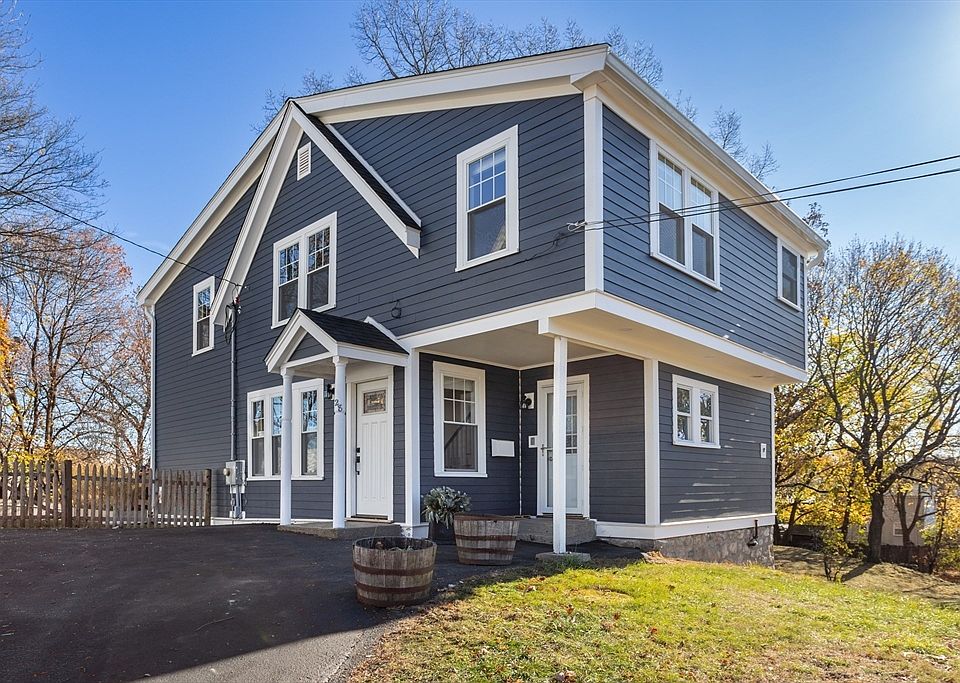 RARE OPPORTUNITY!!! Thoughtfully restored colonial sitting on half acre lot right off I95/128, I93 and Route 1. Eat in kitchen with new cabinets and handsome quartz countertops lead to a sundrenched sitting room. Dining room with sliding doors lead to a lovely deck and patio overlooking the vast yard. First floor also has a living room, mudroom, bathroom and laundry. 4 bedrooms on the second floor offer soaring views and lots of privacy as they sit on the four corners of the house with a family room in the center. Four car driveway with plenty of on street non permit parking. Plenty of outside storage for lawn equipment, tools, bikes etc with two large sheds. A large section of the yard is fenced in giving the kids and/or the dogs a safe space to play. This home is a stone's throw from Legacy Place and roughly a half mile from the Franklin line Commuter rail. Nothing to do to this home but buy it and move in!