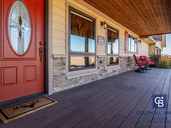 Introducing a custom-built home that seamlessly blends Western charm with modern luxury. Set on 10 acres with mountain views minutes from downtown Cody. As you step onto the front porch, where tongue-and-groove paneling frames the breathtaking mountains. Inside, superior craftsmanship is evident. Granite countertops throughout and an open floor plan designed for both comfort and style. The spacious kitchen features French Provincial cabinets, stainless steel appliances, two pantries, breakfast bar. Rich ceramic tiled floors, resembling natural wood flow into a large dining area and spacious living room with a gas fireplace. The vaulted ceilings offer room for art work or mounts. French doors lead to a sunroom, perfect for morning coffee or evening hues. The adjacent patio invites you to enjoy the outdoors. This home includes two master suites, each with full baths, the third bedroom is equipped with a Murphy bed. The main master suite features a relaxing clawfoot tub, walk-in tiled shower, and a spacious closet with built-in storage. A large utility room with a slop sink and ample storage leads to an oversized, heated three-car garage. Above the garage, a versatile bonus room awaits—ideal for hobbies, or an additional bedroom, complete with its own entrance for privacy. The fenced backyard is perfect for your furry friend. This home offers an exceptional balance of privacy and breathtaking views. FOR ADDITIONAL INFORMATION, REFER TO SELLERS DOCUMENTS.
