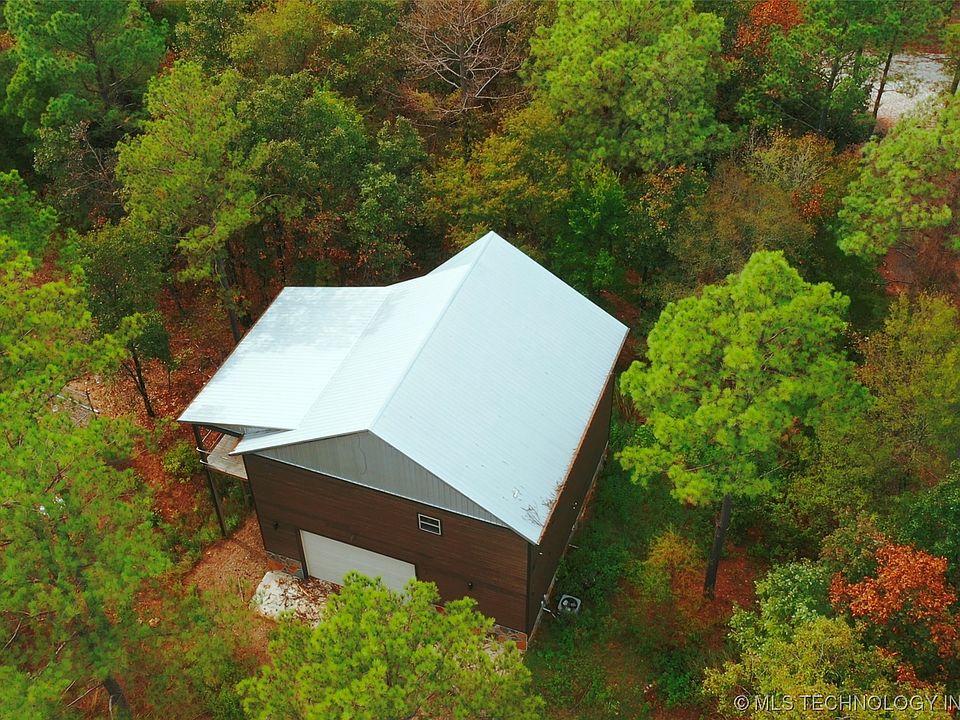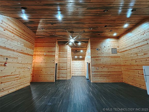 An artisan flair on traditional cabin fare. That is the vision chosen by the owner when this 1BD / 2 BA build was launched in 2020. Expansive floor space. Dramatic ceiling height. Bold hardware and design selections. All choices of taste for buyers looking for an edgy yet earthy cabin in the wooded hills of Broken Bow's vacation district. The upper 1,700 +/- sqft has been finished to suit basic functions including toiletry and custom spa shower, yet left custom furnishings to the discretion of new owners. The lower slab level accounts for the remaining sqft totaling nearly 3,000 in all. A custom spa inspired shower and toiletry area was included at ground level, and an oversized mechanical garage door grants access to RV, boat, or a off-road toy owners. This is a customizable owner option in Oklahoma's most popular vacation town. There is a 65% annual capacity average for rentals at $256 nightly rates. With the Grand Opening of Choctaw Casino in spring of '24 and dozens of attractions popping up near Broken Bow Lake, this property is perfect for owners looking to land for the week while keeping their option open to make in an income.