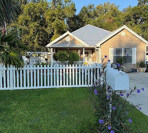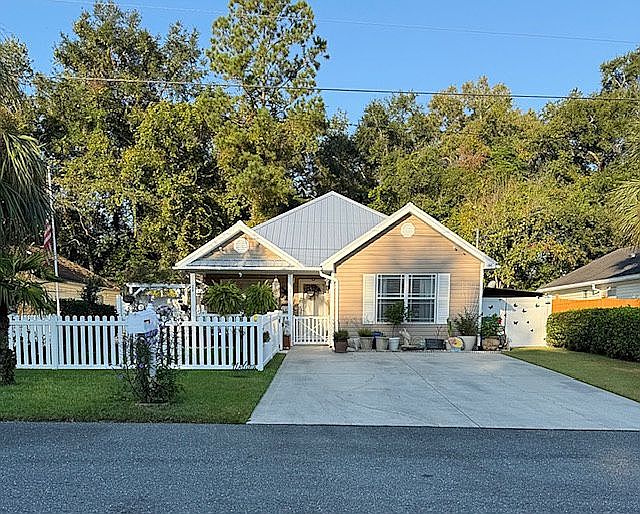 Turn key and immaculate with over 50K in upgrades. Centrally located within one mile of the courthouse off of Shadeville Road. Original owner. This is a quality built Pafford home. Three bedrooms and two baths with a great room that flows easily in to the kitchen. Lots of outdoor space to enjoy the Florida weather. Ceiling fans in the living room and all of the bedrooms. Low maintenance vinyl siding and recently painted on the inside. The additions and upgrades include a metal roof installed in 2022, white vinyl 6' privacy fence in the back, white vinyl picket fence in front courtyard, rain gutters all around, storm doors on both exterior doors, the front porch has vinyl railing with a gate, the back door has a 6' X 7' aluminum awning, over 1000 sq ft of pavers installed, 11' X 44' wood shed, 8' X 16' tool shed, 7' X 8' greenhouse, 10' X 12' canvas canopy. Inside includes a flooring upgrade to LVP wood grain flooring, upgraded kitchen appliances with a Bosch dishwasher, LG SMART range and microwave, stainless steel subway backsplash. Two inch slat blinds on all windows. The master bath has been upgraded to a walk-in shower with a seat and 3 grab rails. Cabinets and shelves installed in the laundry room that offer great storage. The heating and air system was replaced in September 2025 and comes with a ten year warranty plus the first year of preventative maintenance (two trips) which convey to the new owner. The termite bond has just been renewed for the year. The water heater was replaced in September 2025 as well. On a paved road with municipal sewer and water. Willing to work with buyers agents. This doll house, with high-end upgrades, is better than new and ready for the next family to move in.