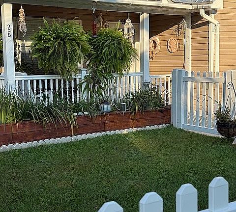 Privacy fenceMetal roofVinyl picket fenceGrab railsGreat roomCanvas canopyCeiling fans