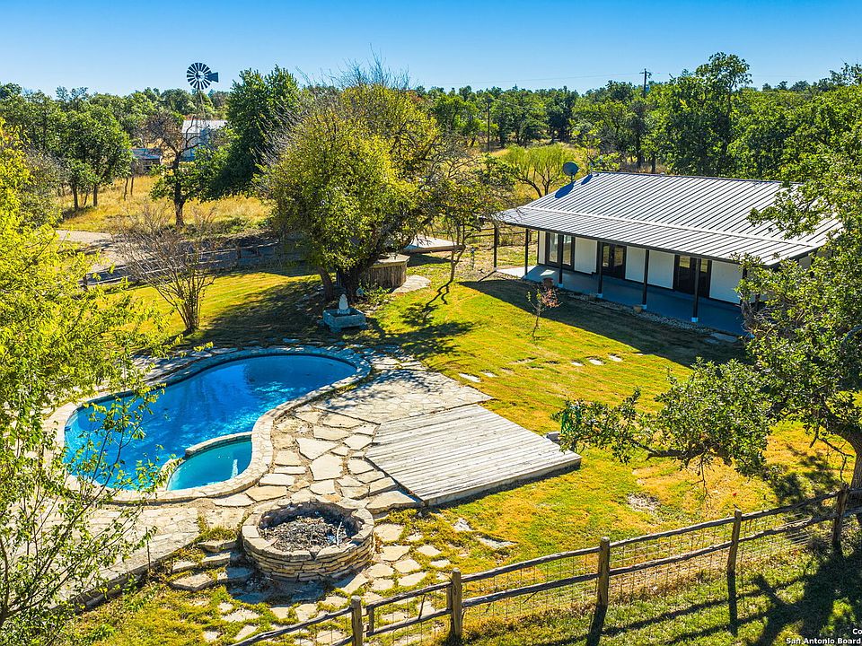 Two homes-20 acres-Workshop-barn! Just 10 minutes from Main Street Fredericksburg and less than half a mile from the iconic Hill Top Cafe, this 20-acre property captures the essence of Hill Country living. Thoughtfully designed for both relaxation and functionality, it features two beautifully finished homes, a newly refinished pool, and exceptional improvements throughout the grounds. The main residence is a warm and inviting 3-bedroom, 2-bath barndominium, offering a blend of comfort and versatility with plenty of room to personalize. Nearby, the charming 2-bedroom, 1-bath cottage sits beside the sparkling, newly refinished pool - perfect for guests or potential short-term rental income. The land is graced with majestic Post Oaks, seasonal creeks, and frequent visits from whitetail and axis deer, creating an atmosphere of peaceful retreat. The property is fenced and cross-fenced, with a high-fenced garden ideal for year-round growing. Additional highlights include a three-bay metal workshop equipped with LED lighting, roll-up doors, and 220-volt power, along with a separate barn with electric and storage, and two water wells providing ample water supply. Whether you're seeking a serene getaway, an investment in Fredericksburg's thriving short-term rental market, or a versatile property to live, work, and play - this estate invites you to experience the best of Texas Wine Country living.