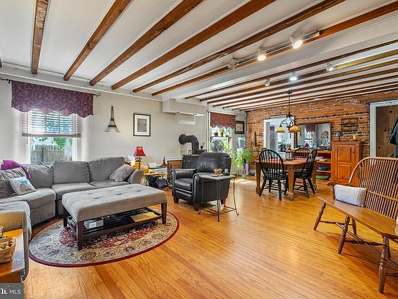 Timeless Charm Meets Modern Convenience in This In-Town Gem. Step into a home that seamlessly blends the character of yesteryear with today's modern comforts. This charming in-town single-family residence offers a wealth of unique features, from original doors and hardware to exposed beams, custom built-ins and a wood burning stove, all adding to its distinct personality. As you enter through the welcoming covered front porch, you'll be greeted by gleaming wood floors and an inviting open floor plan that effortlessly connects the living and dining rooms—perfect for entertaining. The user-friendly kitchen boasts ample counter space, recessed lighting, and a flat-top stove. Just off the kitchen, you'll find an enclosed rear porch and a generously sized laundry room, offering extra convenience. A spiral staircase leads to the second floor featuring three cozy bedrooms and an updated full bathroom, while the finished third level presents endless possibilities. Whether you envision a fourth bedroom, a private home office, or additional storage, the choice is yours. The fully fenced backyard is a private oasis with a garden and a tranquil brick patio, draped with grapevines—a perfect retreat for morning coffee or weekend barbecues. At the rear of the property, a 30'x20' oversized detached two-car garage awaits, complete with ample space for a workshop or extra storage. All of this, located just a short stroll from shopping, dining, and all the conveniences of town living. Don’t miss the opportunity to experience this unique home firsthand. You will be glad you did!!