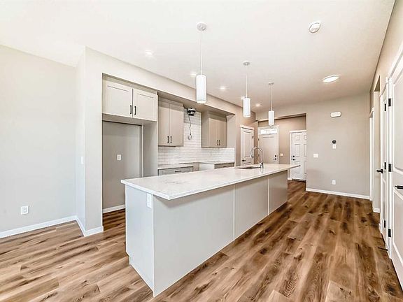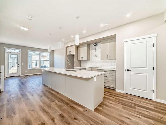 Introducing the "Tilsa" by Hopewell Residential, a stunning 4-bedroom home in the award-winning lake community of Mahogany. Situated across from green space and featuring rear lane access, this beautifully designed home offers both functionality and style, making it perfect for families of all sizes. The main floor boasts a bedroom and full bathroom, providing incredible versatility for guests, multi-generational living, or a private home office. The open-concept living and dining area is ideal for entertaining, enhanced by spindle railing on both the main and upper levels for an open, airy feel. The upgraded kitchen layout is a chef’s dream, featuring a chimney hood fan, built-in microwave, extra storage drawers, upgraded cabinetry, quartz countertops, and pot lights for a sleek and modern aesthetic. An exterior gas line makes summer BBQs a breeze, adding to the home’s thoughtful outdoor features. Upstairs, the bonus room (Entertainment Room) is bright and inviting, thanks to an added side window, creating the perfect space for family movie nights or relaxation. The primary suite is a luxurious retreat, complete with a 5-piece ensuite featuring a stand alone shower with tiled walls, and a spacious walk-in closet. The upper level is completed by two additional bedrooms, a conveniently located laundry room, and a stub wall between the Entertainment Room and stairs, offering privacy, separation and lots of furniture placement options. Designed with future potential in mind, this home includes a separate side entrance and 9' foundation height, making it ready for future basement development—an excellent opportunity for a secondary suite (A secondary suite would be subject to approval and permitting by the city/municipality). The double attached garage provides a secure and warm place for your vehicles with ample storage and convenience. Located in one of Calgary’s most sought-after communities, Mahogany offers an unmatched lifestyle with a 63-acre freshwater lake, two private beaches, and over 22,000 square feet of nearby commercial amenities. Enjoy easy access to parks, pathways, schools, shopping, and the South Health Campus, all while being just steps away from beautiful green space. With high-end finishes, premium upgrades, and an unbeatable location, this home truly has it all. Book your private showing today and experience the best of Mahogany living!