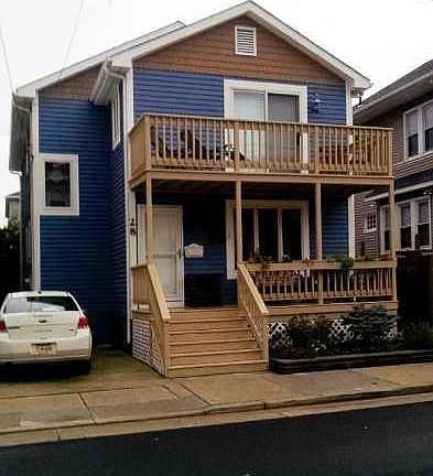STEPS FROM BEACH AND BOARDWALK -Bright, sunny, 3 bdrm, 2.5 baths - built in 1990. One off street parking at front of house. Small garden in front, with raised garden area in back of house. Porch on first & second floor front, with patio area at rear - barbecue and shed. Ocean view from balconey - short block to beach. Built on high part of island - 500 year flood zone - no Sandy damage. Walk to shops, bus, restaurants, library. Near Margate border. New roof, kitchen counters, refrigerator and stove. Hot water heater and heater recently replaced, as well as central air conditioning unit. Outdoor shower has hot and cold water. New roof on shed with plenty of room for bikes, beach chairs, etc. Pergo kitchen floors. New exterior paint job done last summer. Taxes have been appealed in recent years, but will be effected by city wide revaluation taking place this year. Plenty of closets, with attic storage space. This house has it all. Easy maintenance, proximity to beach, boardwalk, shopping, houses of worship, Margate, Atlantic City caisinos and shopping. A great place to be "on vacation" year round!