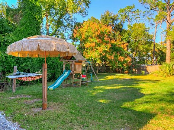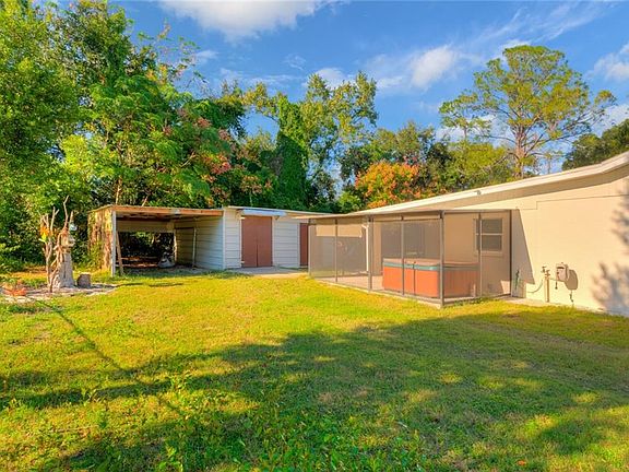 DeBary mid century gem updated for today with a BRAND NEW ROOF! Light and bright with open floor plan and huge yard for entertaining! No HOA so bring the RV or boat as this home has a detached carport and 400 Sq ft workshop with its own 100 amp electrical panel. Upon entering you are greeted with a large dining room and open kitchen featuring soft close cabinets and updated appliances. Split plan has 2 bedrooms and an updated bath on one side and master with en suite bathroom off the kitchen. Through the kitchen is your picturesque living room with wood burning fireplace and beautiful window seats on either side. Oversized screened in patio comes with hot tub. Fully fenced lot just under 1/2 acre for ultimate privacy! Other features include inside utility, new AC and newer water heater. Zoned for A rated DeBary elementary, and close to public boat ramp. Perfect location minutes to I4 and is great for commuting to Orlando or the beaches. Call today for your private tour!