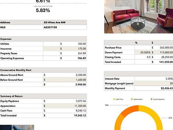 Welcome to this charming half-duplex bungalow in the desirable community of Highwood, featuring an illegal basement suite, excellent potential, and a virtual tour you can view online! Thoughtfully updated and well maintained, this property offers a bright and functional layout. The main floor features an inviting open-concept living and dining area anchored by a cozy brick wood-burning fireplace, updated flooring, and large windows that fill the home with natural light. The kitchen boasts newer appliances and stylish finishes, alongside two well-sized bedrooms and a full bathroom. All of the furniture on the main floor is included in the sale, making this a true turn-key opportunity. Both levels are currently occupied by tenants who have cared for the property as their own. The home has been well maintained over the years and includes a newer furnace. Outside, you’ll find a landscaped and fenced backyard complete with garden areas, a storage shed, and convenient back lane access. It’s conveniently close to downtown (10 mins) for work, dining, and entertainment, as well as quick access to the airport (13 mins) for your travel needs. Situated near the University of Calgary and SAIT (9 mins) and Nose Hill Park (5 mins), you’ll have easy access to biking and walking trails, as well as off-leash dog parks, perfect for outdoor enthusiasts. Nearby schools (North Haven School and Colonel Irvine School) make this property an excellent choice for families. Don’t miss your chance to own this gem in a fantastic location. Check out the virtual tour online, then contact us today to schedule a viewing and make this property yours!