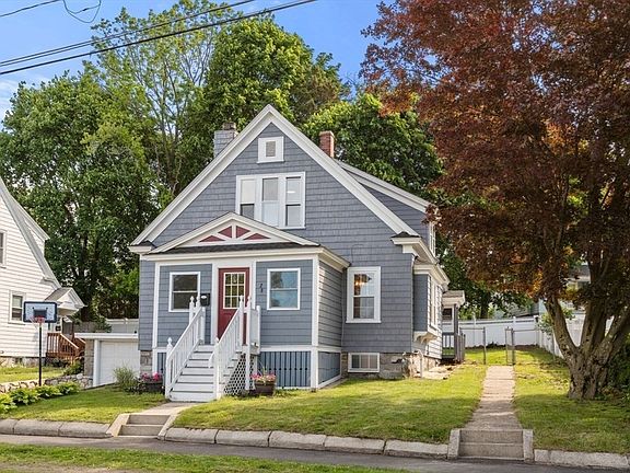 Home Sweet Home - This Craftsman Colonial is tucked away in the heart of the Library District offering convenience and location! The front door welcomes you to a large enclosed porch. The living room has a wood burning fireplace and connects to the dining room with darling window bench and built-in china cabinets. The large eat-in-kitchen has granite countertops and stainless-steel appliances. First floor office or bedroom and updated full bath located down the hallway finish this floor. Second floor primary bedroom with double closets, additional 2 bedrooms with skylights and another full bathroom are all upstairs. Fenced in backyard with deck is perfect for summer BBQ's and entertaining. Other amenities include a young boiler, refinished hardwood floors and new carpets. This location can't be beat - just steps away from Thomson School. Commuters will love proximity to route 495. This one packs a big punch - Welcome HOME!