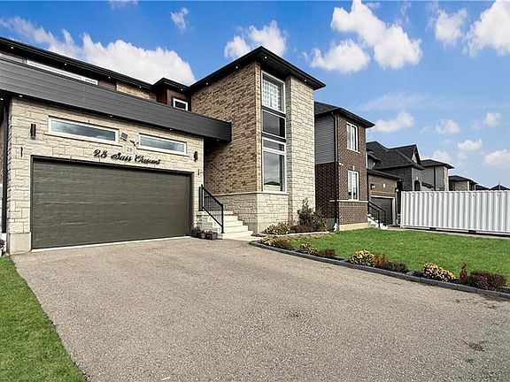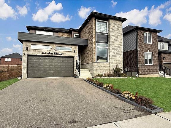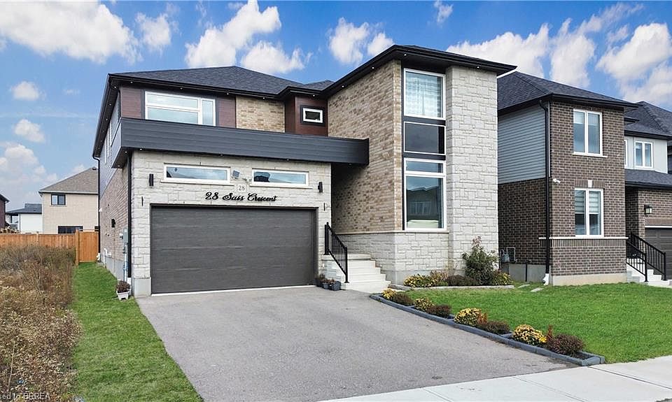 Welcome to 28 Sass Crescent in Arlington Meadows—one of Paris’ top family communities. This modern, beautifully finished home features 10-ft ceilings, bright open-concept living, and a stunning custom feature wall in the living room. The chef-inspired kitchen showcases stone counters, a gorgeous tone-on-tone backsplash, extended cabinetry, pantry storage, and a custom-designed island that anchors the space. A main-floor office/den easily converts to a fifth bedroom, complemented by a convenient side entrance ideal for multigenerational living. Upstairs offers four spacious bedrooms and three full bathrooms, including two private ensuites, a Jack & Jill, walk-in closets, and a second-floor laundry plus bonus den. The 9-ft basement provides endless potential for a gym, theatre, or future suite. A fully fenced backyard with evening lighting, double garage, and extended driveway complete this exceptional home. Close to schools, parks, trails, and Highway 403—this is a rare find in a premium neighbourhood.
