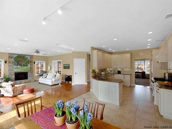 Custom built by the builder for his family and loaded with extra details makes this house a home. The spectacular wrap around front porch, expansive rear deck, screened porch & mountain & farmland views beg for you to come enjoy the outdoors. The gourmet kitchen with 6 burner Wolf stove, breakfast area & open grand room w/ raised hearth stone fireplace and 9' ceilings throughout the house creates large entertaining space for those wonderful family & friend gatherings. The formal dining room with bay window is now a room for a writer. An intimate media room with french doors adds quietness to other areas of the house. A generous size walk in pantry, full bath and laundry room round out the main floor living area. The second floor has 2 master suites, one each wing of the house each having private en-suite bath. One offers sun drenched areas for sitting & sleep, dressing area has two walk in closets with closets. The other is more intimate with winter views of the ridge. There are 2 additional bedrooms and another room used as an art studio that share a full bath with double sink for a total of 4 bathrooms in the house. There is no lack of storage with the abundant closets within closets, to the walk up attic, to the full basement with 7'6" ceilings and the attached garage that can house your cars and your toys. Graciously appointed and well built in a wonderful community in Gardiner. Private and easy to live in.......The Shawangunk Mountains inspire you to take an ambitious walk up the mountain road to the Mohonk Preserve or enjoy running the back country roads right from your home or......... just relax and watch the sunrises and sunsets dance on the mountain