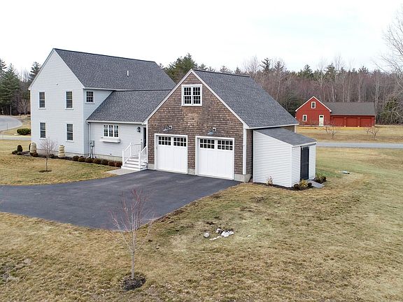 This timeless, classic, custom colonial is notably sited in a picturesque double cul-de-sac neighborhood of 8 reproduction homes. This stately home sits on lush, wood-lined acreage with perennial beds, gorgeous landscaping, maple & flowering trees. The mudroom greets guests with a live edge handmade wood bench and coat hooks. A lovely powder room with pocket door completes this space. Enter the heart of the home, the kitchen. Crisp white cabinetry and exquisite fixtures adorn this open and flowing space with 8 ft. island, marble countertops, high end stainless appliances, full-size double ranges and ovens, custom industrial grade range hood, walk-in pantry with beverage cooler, and French doors leading out to the patio. Elegant and expansive dining room and spacious living room with gas fireplace. European oak wide plank engineered hardwoods and European white waxed wood doors w/ glass doorknobs throughout the home. Spacious primary bedroom suite, large walk-in closet and built-in wood closet system. Luxurious private bath with ceramic overcast iron tub, dual shower heads in polished nickel, marble hex floors and white ceramic subway tile. Two additional bedrooms, upstairs laundry and a hall bath with subway tile and marble hex floor complete the upstairs. Potential for expansion in the space over the garage that has heat/AC and is insulated, just waiting for your finishing touches. Come enjoy all this home has to offer and all in the quintessential town of Chester, NH!