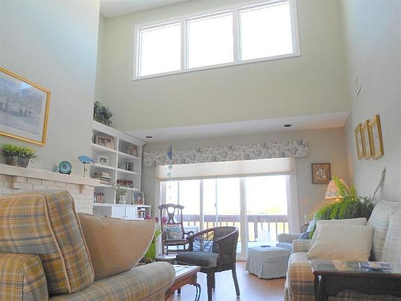 Still time to get in for the Summer! Enjoy the ever changing canal views and stunning sunsets as you sit by your cozy gas fireplace in this homey condo. Over 2,000 square feet of living space with gas heat and central air. The cathedral ceilings and massive wall of windows let in lots of light to the main living area. Possible one floor living with a bedroom, full bath and laundry on the main floor. Upstairs is a huge master bedroom with brand new carpet, large walk-in closet and private full bath w/ marble counter top. The first floor den is a versatile area to use as you wish. There are three balconies to enjoy the outdoors, and a beautiful pool in the complex. Two deeded parking spaces. Call to see this lovely condo today!