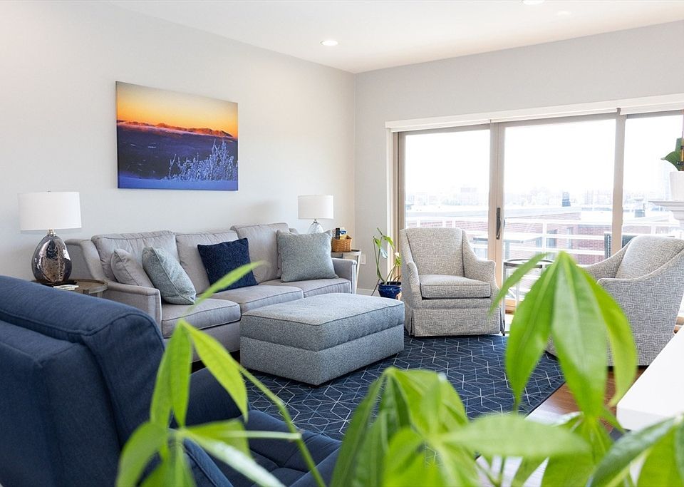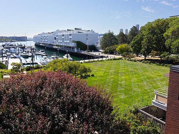 Unrivaled Waterfront Living. This exceptional, rarely available, end-unit at Shipway Place offers a coveted waterfront location with sweeping southwest views. Renovated in 2023, the open-concept living space features floor-to-ceiling windows, hardwood floors, and a wood-burning fireplace with custom built-ins. A private second-level balcony overlooks Boston Harbor, perfect for sunrises or moonrises. The modern kitchen includes stainless steel appliances, a large quartz island, custom cabinetry, and a breakfast nook with views of lush landscaping. The primary suite offers a spa-inspired "wet room" with a freestanding tub and frameless shower, plus spacious walk-in California closets. A large private deck is ideal for outdoor entertaining. Additional features include two-zone AC, central vacuum, washer/dryer, power window shades, radiant floor heating in bathrooms, 2 garage spaces, and extra storage.for larger items like golf clubs, skis, Christmas decorations.Schedule your showing today