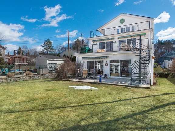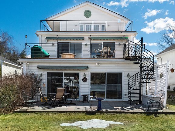 12 year young custom built Waterfront home ! Expect to be impressed from the moment you enter front door and look through the open concept layout and view the lake ! Top floor has 2 large bedrooms with spa like bath. 1st floor has entertaining style floor plan with bamboo flooring fireplace and wet bar. Lower level has a bedroom with large walk-in closet -sittingroom-,full bath-combination family room -summer kitchen & dining area. 2 large decks & patio area,3 central a/c systems ,fhw & radiant heat,Fully landscaped lot with irrigation . Enjoy your own private beach ! Vacation all year long ! Floor plans attached.