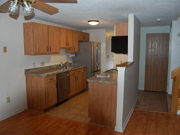 great location. close to rt. 20 and Mass Pike . 2 bedrooms on 2nd floor with separate baths and walk in closets. 1st floor has kitchen and living room/ dining area, sliders lead to concrete patio in back yard. bonus room on 1st. floor would work for office, den, 3rd bedroom or craft area. basement is half finished as well.Laundry hook ups in basement. Ready to move in!!