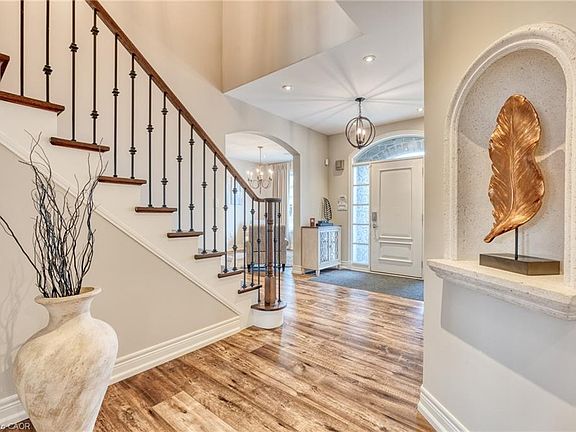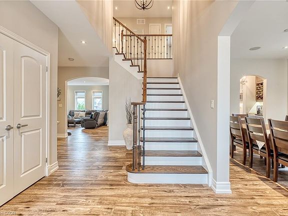Welcome to 28 Southmeadow Crescent, Stoney Creek. Nestled into a quiet neighbourhood, this home is an entertainers dream, featuring large open concept rooms on the main floor and in the basement. Featuring over 4000 square feet of finished living space, this home is equipped with 4 bedrooms, 4 bathrooms, 2 full kitchens, and multiple living and family rooms. With the gymnasium style rolling wall in the basement, kids can enjoy a huge recreation space that is versatile for hanging out with friends, sports training and expandable for large family gatherings. For the hobbyists and handy men we have a heated garage with high shelving, 50 AMP electrical panel, hot water hose bib, gas radiant heat, and additional space in the rear shed also including a 50 AMP electrical Panel. Stepping into the backyard this home enjoys a covered outdoor kitchen and sitting area surrounding a custom stone fire place with a brick pizza oven in the upper portion. The ceiling fan keeps the air moving on those warm summer nights, while the illuminated pond creates a picturesque backdrop for ultimate relaxation. For those with a green thumb, the raised garden beds and fence mounted planters provide plenty of space for home grown foods and botanical arrangements. Full list of features and upgrades ready upon request. Book your showing today!