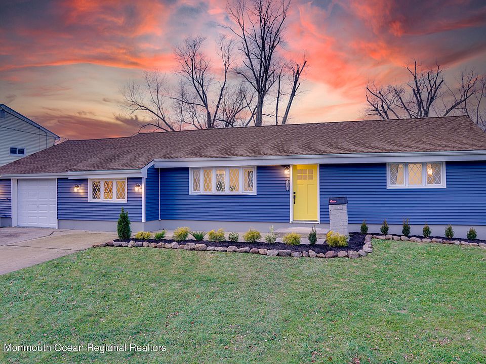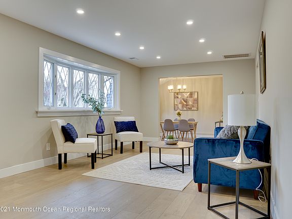 This Beautiful renovated 3 Bedroom Ranch with Den and Family Room features a gorgeous brand new kitchen with white shaker cabinets, granite counters, new stainless Steel appliances and farm house style sink. Open shelving and built-in wine cooler make entertains fun. Built-in seating with storage and ship lap complete this custom designed kitchen. The family room located right off the kitchen features a wood burning fire please and sliders to the back yard. New A/C, new furnace, new water heater, and new hardwood flooring throughout most of the home. Located on a corner lot in a great neighborhood within walking distance to the park. Conveniently located off Route 34. Close to shops and Restaurants. 12/22/21 Highest and Best by 6 pm