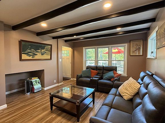 The wait is over! This stunning lakefront property comes complete with a deck, dock, and nearly everything new. Tastefully renovated, it features a beautiful living room with a fantastic wood-burning fireplace, a brand-new kitchen, 3 bedrooms, 1.5 baths, and a gorgeous patio offering breathtaking lakeside views. Hardwood floors run throughout the home, and there's plenty of storage space in the downstairs garage. Enjoy walking to nearby restaurants, bars, and social events. This one won’t last long – perfect for commuters!