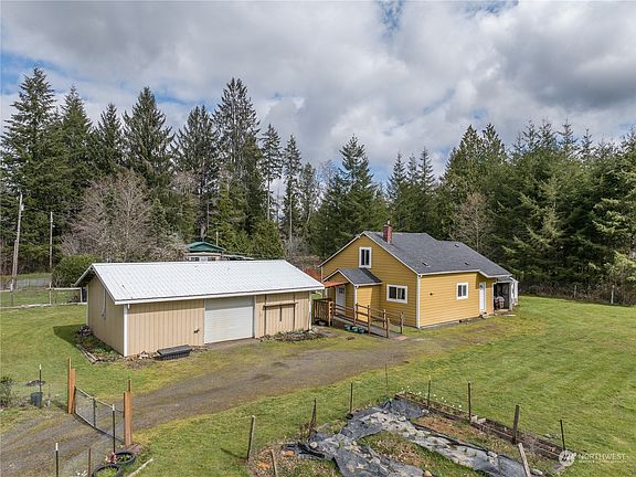 Experience the best of both worlds with this 1-acre country home, just minutes from town. Surrounded by wildlife, near beaches & rivers, it's a PNW dream for country living enthusiasts. large garden plot, pear, plum, fig, blueberry, rhubarb, apple trees, and more. Plus a chicken coop for hobbyist farmers. 24x36 garage/shop is equipped with a wood stove, plumbing, electricity, and a fan ventilated game processing room. The main level has a spacious kitchen with dining area, large laundry room, bedroom, and bathroom. Upstairs has 2 bedrooms, office/bonus room, and a versatile landing area. Recent updates:new flooring (2024), roof (2021), and cement board siding (2020).This property is a haven for those seeking a balanced country lifestyle.