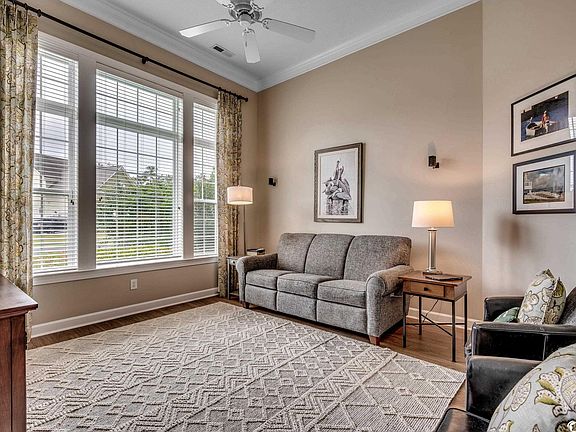 This is a one of a kind beautifully designed Low Country style custom built home located in the gated community of Palm Bay at Prince Creek. This home features 4 bedrooms & 2 1/2 baths on the first floor level. Bonus room, full bath & closet on the 2nd level. On the first floor you will find a large master suite with lake views, large walk-in closet with built ins, Master bath features a spa style walk-in shower, vanity, window seating, and plenty of storage. Also on the first level you will find a powder room, laundry room, formal dining room, den, open Great room/ Family room with a beautiful ceiling fan, gas fireplace, French doors and large windows line the back of the home, the French doors open onto the patio of your private backyard oasis on the lake with the soothing sounds of a fountain. The back patio features an automatic awning, gas connection for your grilling needs, and fencing. A generous in size kitchen featuring a breakfast bar, 6 burner gas stove, granite counter tops, tiled back splash, 42inch wood cabinets, pantry, and eat in breakfast area. The interior is host to many upgrades and custom finishes to include CoreTec LVP, Tile, crown molding and custom window treatments. The exterior of this home has beautiful Hardie plank siding and a 2 car attached garage complete with cabinets and a utility sink. Home also features a Rinnai tankless water heater, Generac Guardian Generator, all doors are Solid doors, UV lights in the duct system, wired for Direct TV and Cable. Palm Bay has many amenities to include swimming pool, tennis courts, community park area and is just minutes from Brookgreen Gardens, Huntington Beach State Park, the Waccamaw River, public boat landing, Marshwalk at the Inlet and beaches of the south end. Ask your Realtor today for the additional detailed features of this home. All information is deemed reliable but not guaranteed. Buyer is responsible for verification.