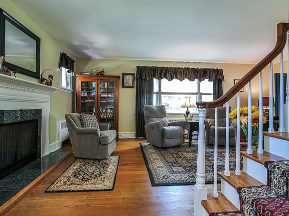 Brick Cape Cod, great block overlooking the meadows but from a very high vantage point. Beautiful hardwood floors throughout. Living room with decorative fireplace, Dining room in center of home for gathering times and incredible kitchen with tile backsplash, corian counters and stainless appliances that leads to oversized pantry and sitting room to overlook your raised and multi level Trex deck plus Master Suite on 1st floor with great bathroom!! Two ample bedrooms and large bathroom with corner shower on second floor. Pull down attic access. Basement features laundry area with basin style wash sink and lots of storage. There is a very large space that could be remodeled into a play area, office or extra living space of your imagination. Brick retaining wall adds charm and curb appeal as the lovely landscaped gardens roll into the lush grass. This home has been maintained and has has had a lot of updates done. Seller knows where they are going and showings are easy.