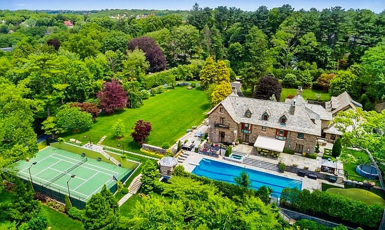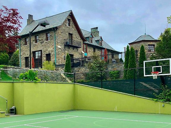 This magnificent English-style estate is an easy and convenient 20 minutes to Manhattan and features an enviable lighted tennis/sports court, putting green and 75 ft. heated pool and spa surrounded in 2.67 gated acres of incredible arboretum-quality gardens. Designed in 1912 by Carrere and Hastings, architects of the New York Public Library, and constructed from stone quarried on the property, the completely renovated residence retains its museum-quality details and beautifully incorporates app-controlled state-of-the-art amenities on every level. Creating an unsurpassed estate for today's living, the gracious and inviting living room is beautifully-proportioned and features the original tracery ceiling and Gothic Revival fireplace, and sets of tall French doors opening to the terrace. A billiards room features a media-fitted marble fireplace, recessed custom cabinetry, and three sets of tall French doors opening to the terrace and pool. The completely bespoke kitchen with top-of-the-line appliances, a center island, quartzite counters and an amenity-filled butler's station opens to the family room with marble fireplace, recessed custom cabinetry, cove-lit cathedral ceiling and wall of windows with wide glass doors opening to the lawn. With two floors of private quarters, it creates a perfect space with everyone in mind. The second floor main bedroom has a fireplace and dual custom-fitted dressing rooms each with their own luxuriously-appointed spa-bath. There are an additional four ensuite bedrooms, one with a Juliette balcony overlooking the pool. The third floor has an inviting sitting area at the landing, two bedrooms with a shared bath, wall of built-in storage and a walk-in storage closet. The lower level offers a gym, recreation room, wine cellar, large laundry, whole house generator and plenty of storage. The beautifully-landscaped and maintained grounds are gated, fully-fenced and also feature a delightful electrified playhouse for the young, or young at heart; a tucked-away sitting area with fire pit surrounded in privacy, and two rear entrances with security entry all creating a sense of complete privacy miles away from it all.