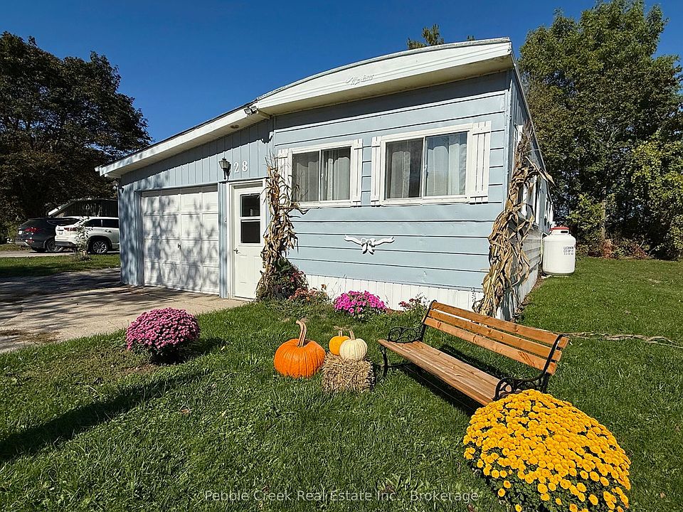 Welcome to The Village! Attractive mobile home with several additions including attached garage and workshop, located just minutes north of Goderich in Huron Haven! This well maintained home is bright and cheery and has seen numerous renovations including replacement windows, paint and flooring. There is also a newer water heater and propane furnace. Features include a spacious eat-in kitchen with an abundance of cabinets and updated pot lighting in the ceiling, large dining/living room, a cozy den, 2 bedrooms and a bathroom with jet tub and laundry. Outside, there’s paved parking for 2 vehicles, and a walkway leading to a covered deck, spacious open deck and workshop access. This is a wonderful opportunity to own your own home in a quaint land lease community with new rec center and pool, close to shopping, golf courses and the shores of Lake Huron! Bonus – double-wide fridge, stove and washer/dryer included! Call your REALTOR® today for a private viewing!